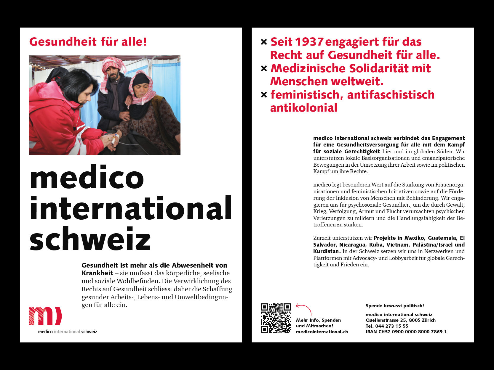 Gestaltungskonzept für Flyer und Social Media für die Veranstaltungen von medico international schweiz